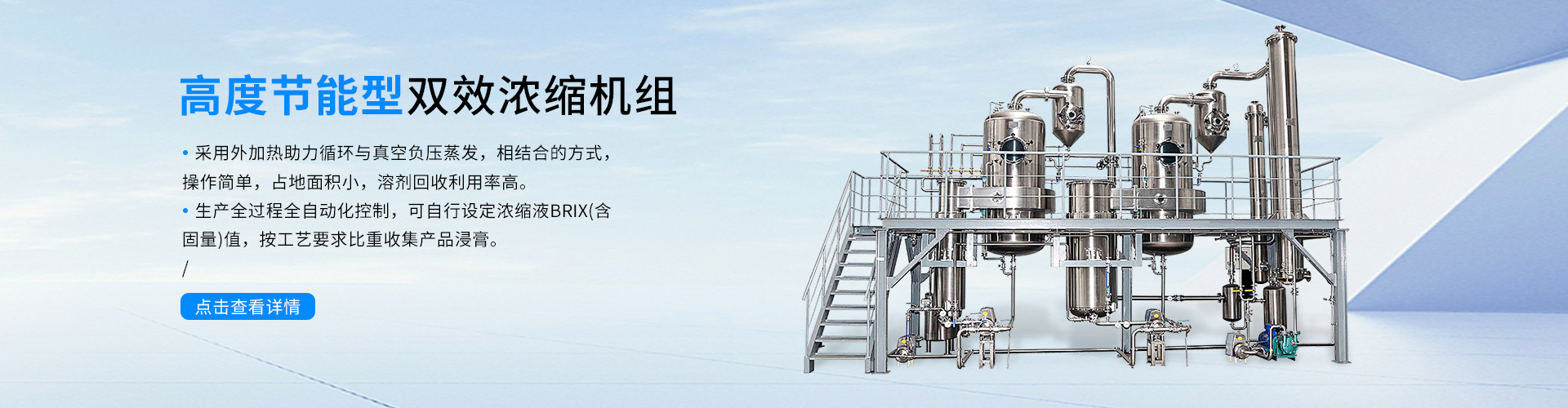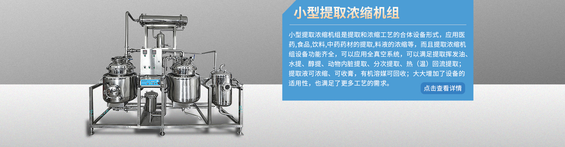 中核企業長期全心致力于機械工程和衛生級流體設備的研發生產。經過多年技術積累和對外合作,已成功為客戶提供了各種規格的中藥提取設備、濃縮蒸發成套設備、甲醇和乙醇回收設備、配液罐、反應釜及各種規格罐類設備等。憑借先進的設備制造技術和豐富的產品加工經驗,在吸收先進技術的基礎上,不斷改進、完善設計和加工工藝。可根據客戶的發展戰略及實際需要量身定做,為客戶提供合理、節能、安全、環…